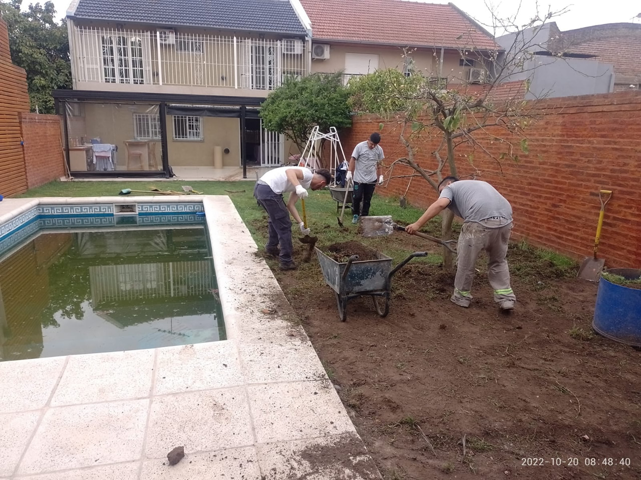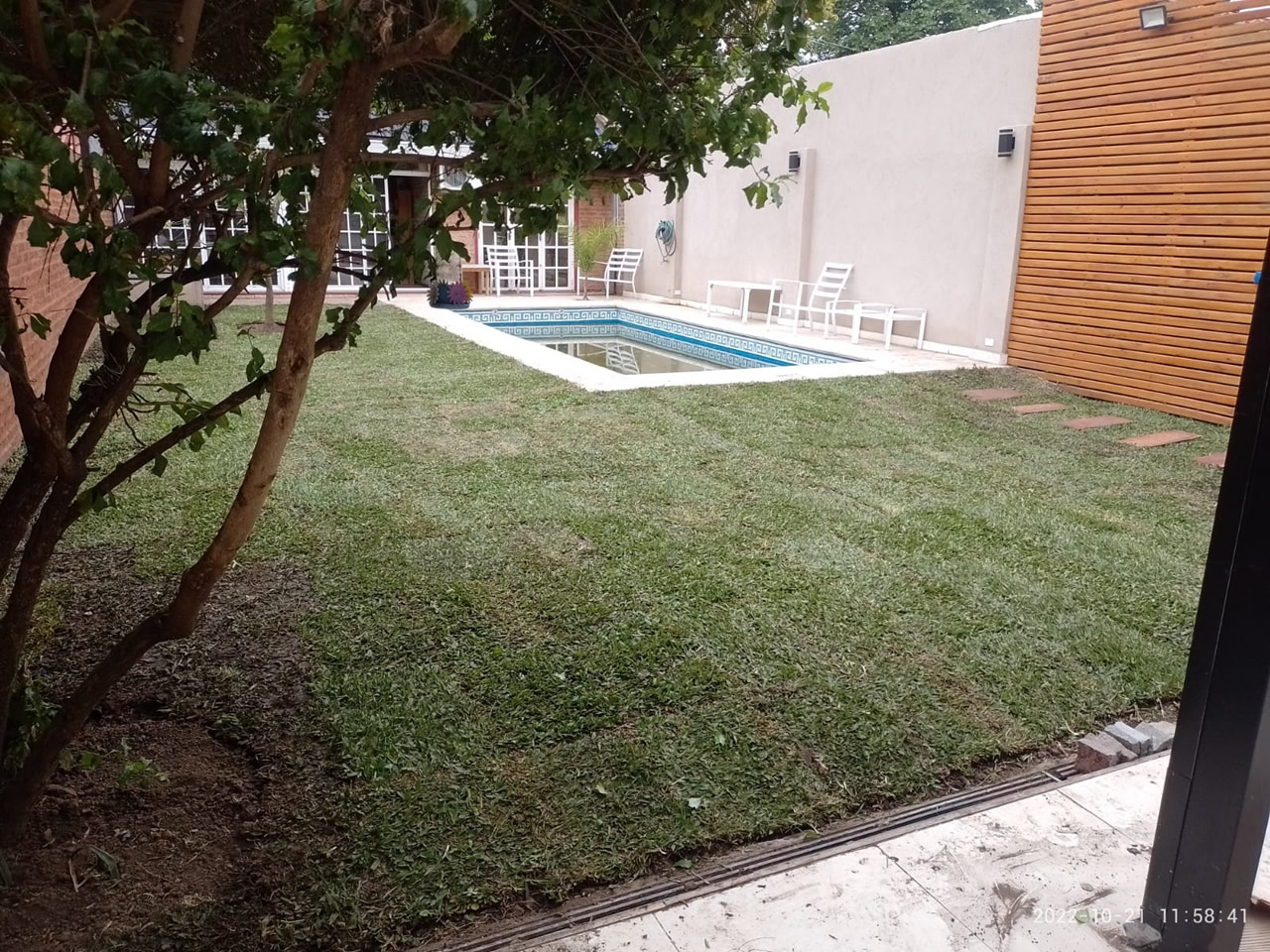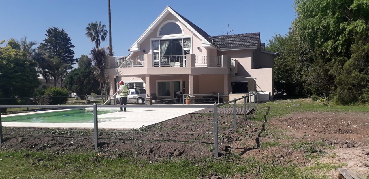 Provisión y colocación de plantas y césped, grama bahiana, sistemas de riego, poda de altura, extracciones de ejemplares, limpieza de obra, nivelación de terreno, etc..